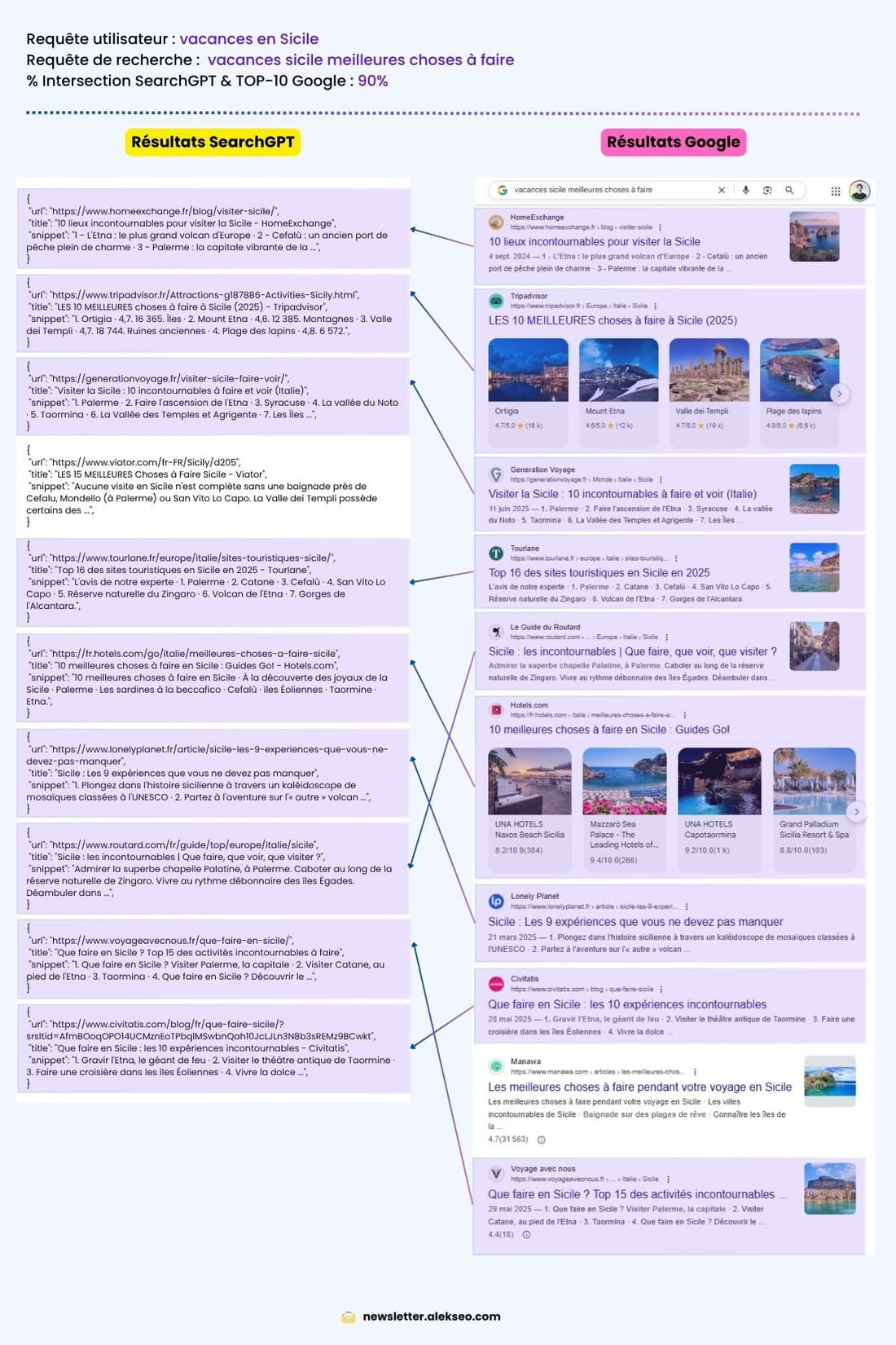 Les extraits de texte et les dates correspondent exactement à ceux affichés par Google, jamais à ceux de Bing. De plus, SearchGPT récupÚre du contenu indexé, JavaScript inclus, et fait apparaßtre dans les URL des paramÚtres propres à Google (par exemple ?srsltid).