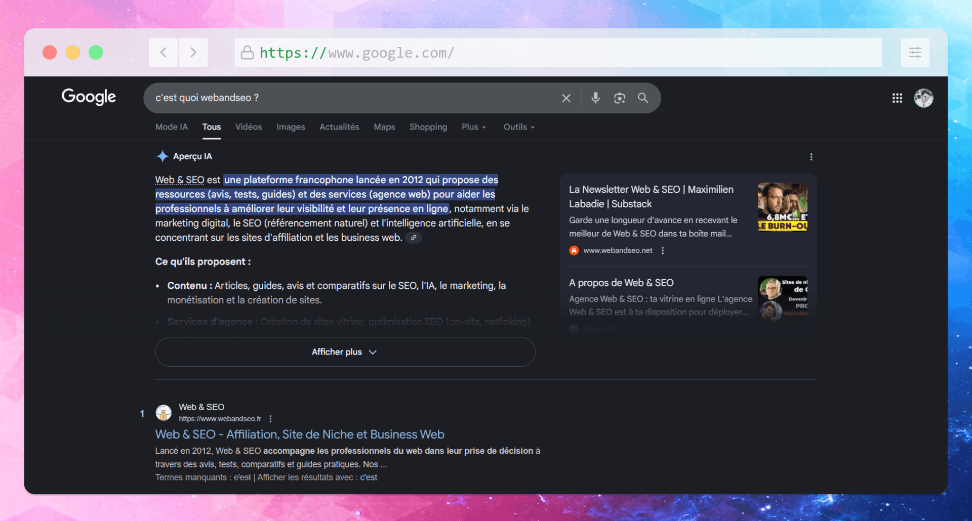 Câest lâĂšre du Zero Click Search. Lâutilisateur a sa rĂ©ponse, il ne visite plus ton site. Pour lâaffiliation classique ou la pub au CPM, câest clair que ça pique.